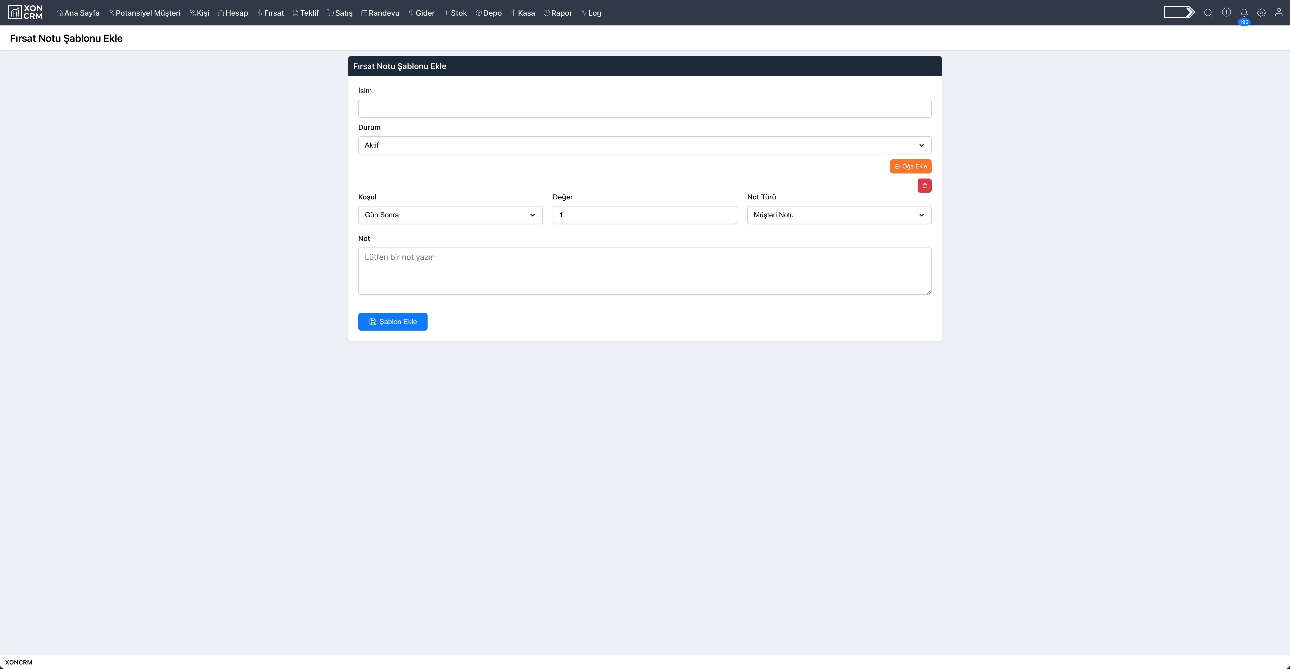 - İsim: Fırsat not şablonun ismi güncellenebilir.