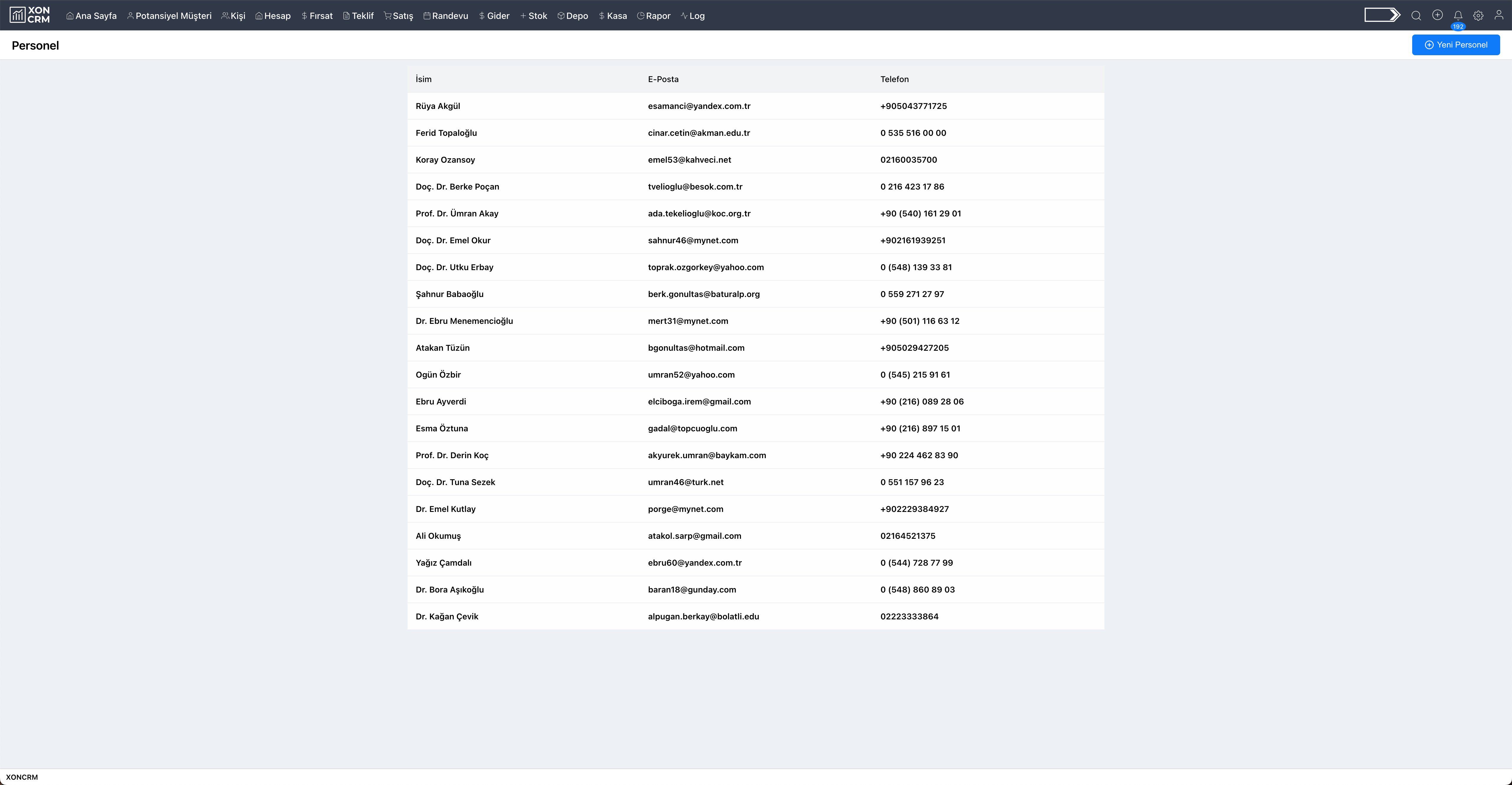 Açılan sayfada eklendi ise personeller listelenmektedir. Bu personeller listesi şu bilgileri içerir: